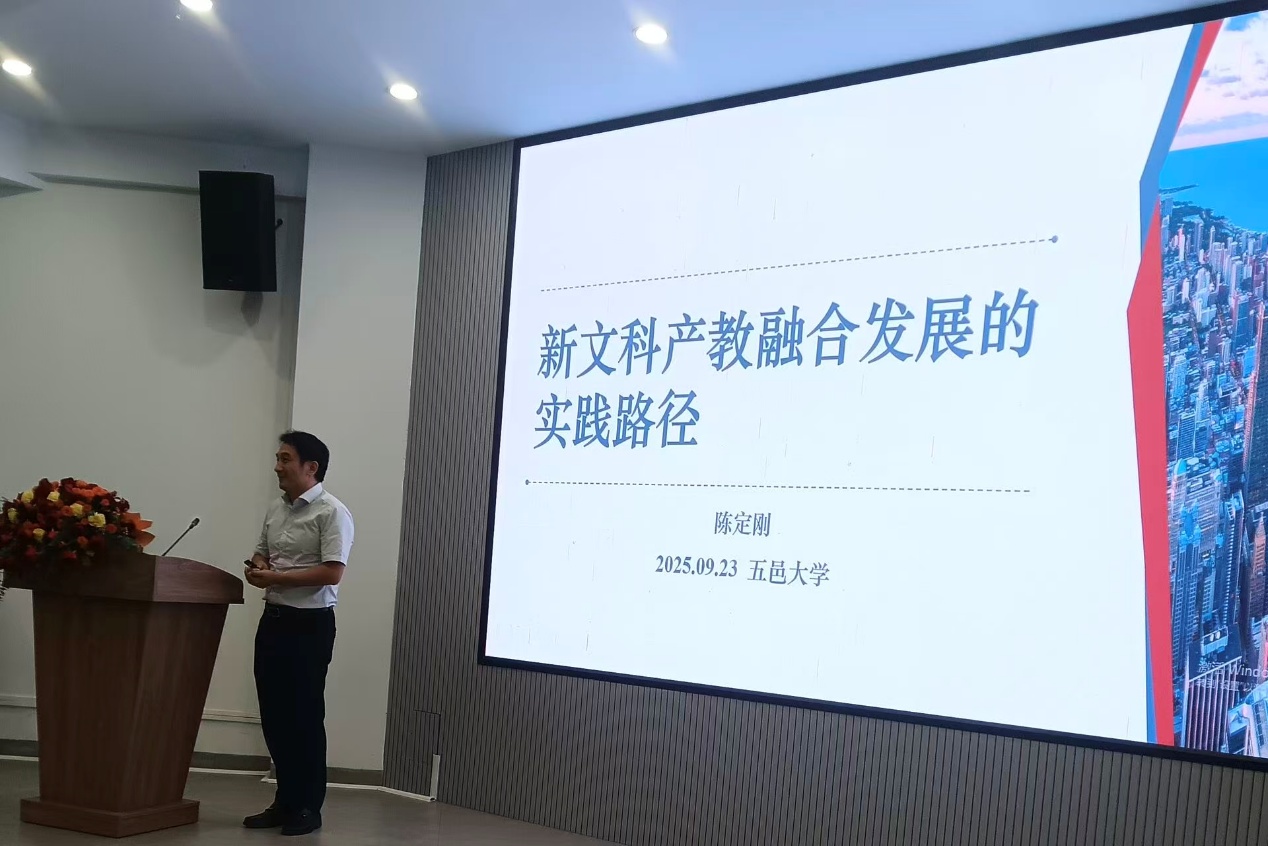 2025年9月23日,五邑大学人文与政法公司揭牌仪式暨新文科建设背景下产教融合发展战略研讨会在鹤山楼举行。太阳成集团tyc33455陈定刚博士应邀出席,并为大会作《新文科产教融合发展的实践路径》主题报告。