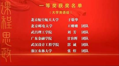 公司太阳成集团tyc33455甘容辉老师团队(翁佳炀、夏娟、李海燕)在“2022年外语课程思政优秀教学案例全国交流活动”中荣获大学英语组全国一等奖。