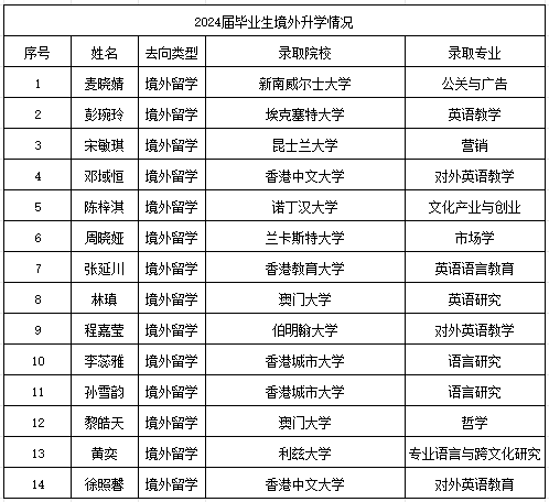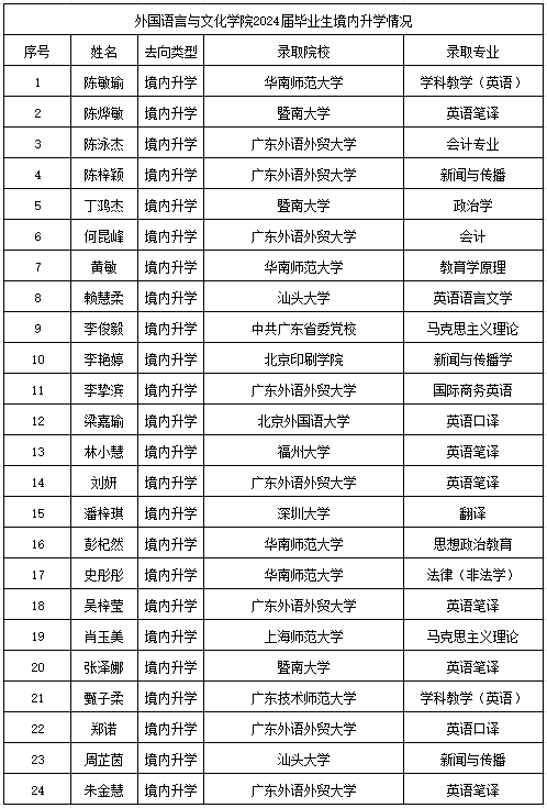 外文院2024届考取硕士研究生情况一览表