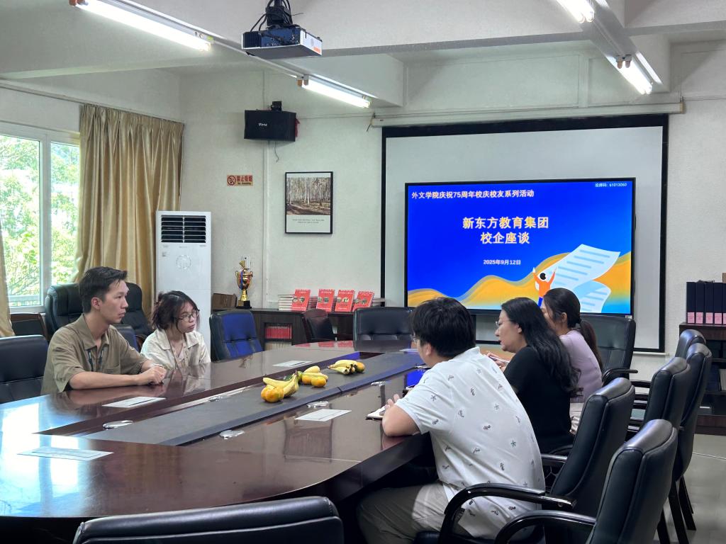 新东方教育集团人力资源专员张雅诗、梁智钟介绍了新东方最新的招聘规模、招聘流程以及对高素质外语人才的迫切需求。自双方开展共建项目以来,新东方将太阳成集团tyc33455列为重点招聘院校,定期举办专场招聘会,为优秀毕业生提供精准、高效的就业通道。王丹副书记针对双方的深度合作提出建议,期待未来不仅能为新东方输送优秀毕业生,更希望通过“请进来”和“走出去”相结合的方式,让企业深度参与人才培养的全过程,共同打造校企合作的典范。随后,双方围绕育人领域的多个方面展开了热烈而富有建设性的讨论,并达成系列共识。