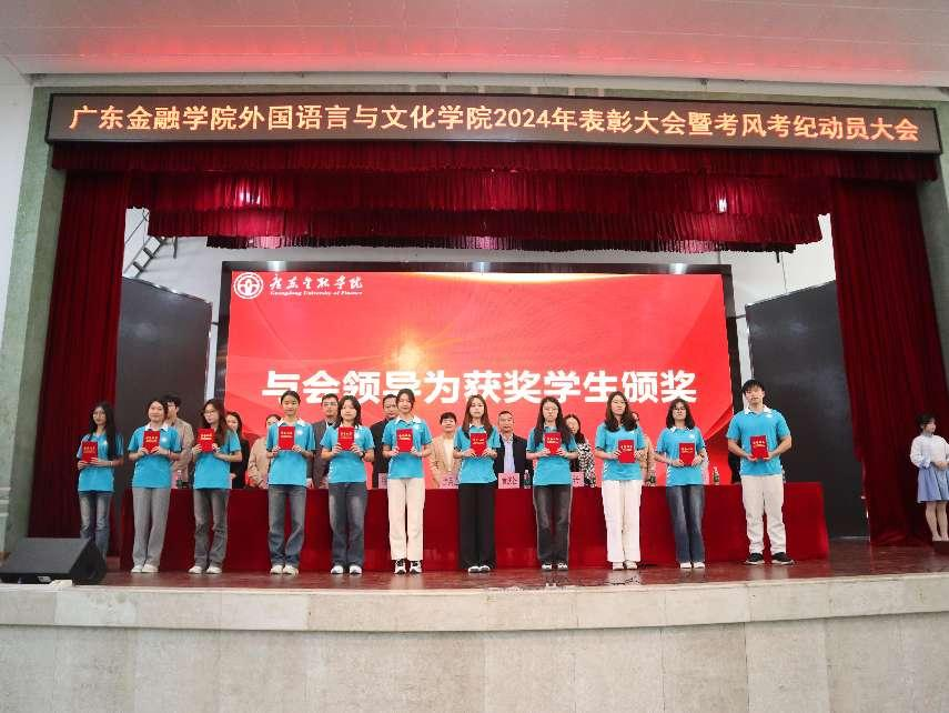 会上,经理涂兵兰宣读了《太阳成集团tyc33455二〇二四年先进集体和先进个人表彰决定》。22、23、 24 级辅导员老师依次宣读集体奖项以及思想道德、学习、文体等方面个人奖项的获奖情况。随后,主席台就座的领导老师为获奖集体和个人颁发荣誉证书,获奖员工代表梅颖姿同学上台发言。