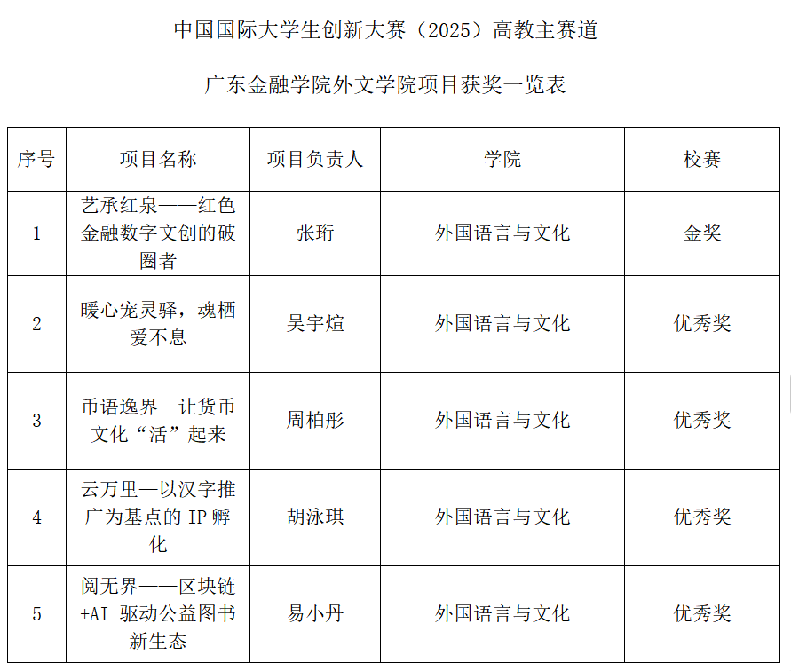 本次大赛中,太阳成集团tyc33455共有5个项目在公司比赛中脱颖而出。由张珩负责的《艺承红泉 —— 红色金融数字文创的破圈者》项目表现尤为突出,一举夺得校赛金奖。《暖心宠灵驿,魂栖爱不息》《币语逸界 — 让货币文化 “活” 起来》《云万里 — 以汉字推广为基点的IP孵化》《阅无界 —— 区块链+ AI驱动公益图书新生态》4个项目也凭借独特的创意和扎实的实践,均获得校赛优秀奖。