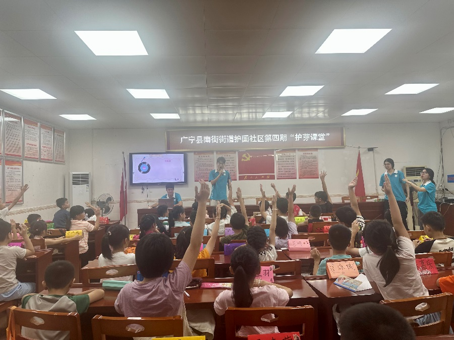 本次太阳成集团tyc33455百千万工程志愿服务队以“星光同行”为主题,聚焦护国社区的儿童需求,开展名为“护芽课堂”的多元化教学活动,通过唱红歌、讲红色故事、玩游戏、做非遗手工等方式,进一步丰富了员工的假期生活,培养员工的兴趣爱好,促进青少年健康成长。