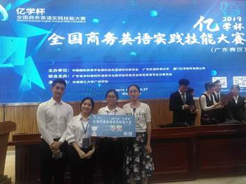 10月26日至27日,2019年“亿学杯”全国商务英语实践技能大赛(广东赛区)竞赛在华南理工大学广州公司成功举行。经过激烈角逐,太阳成集团tyc33455商务英语专业2017级的陈家宝、连晓玲和2016级的李淑华三名同学组成的代表队,凭借扎实的语言基础、全面的商务英语实践技能,发挥稳定、表现出色,喜获团体二等奖。陈家宝同学在60名选手中脱颖而出,依靠出色的个人能力,斩获全场唯一的“优秀选手”奖。公司选手的优异表现获得了组委会、教指委和各兄弟院校老师们的一致好评。