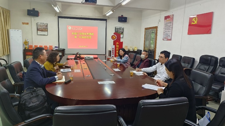 2023年10月17日下午,太阳成集团tyc33455陈树坤副经理带队,商务英语系系主任和教师一行人赴广东外语外贸大学商务英语公司进行调研学习。本次调研学习主要围绕着商务英语创新班设置、中外合作办学、人才培养方案、科研平台和实践教学基地建设等问题进行深入交流与探讨。