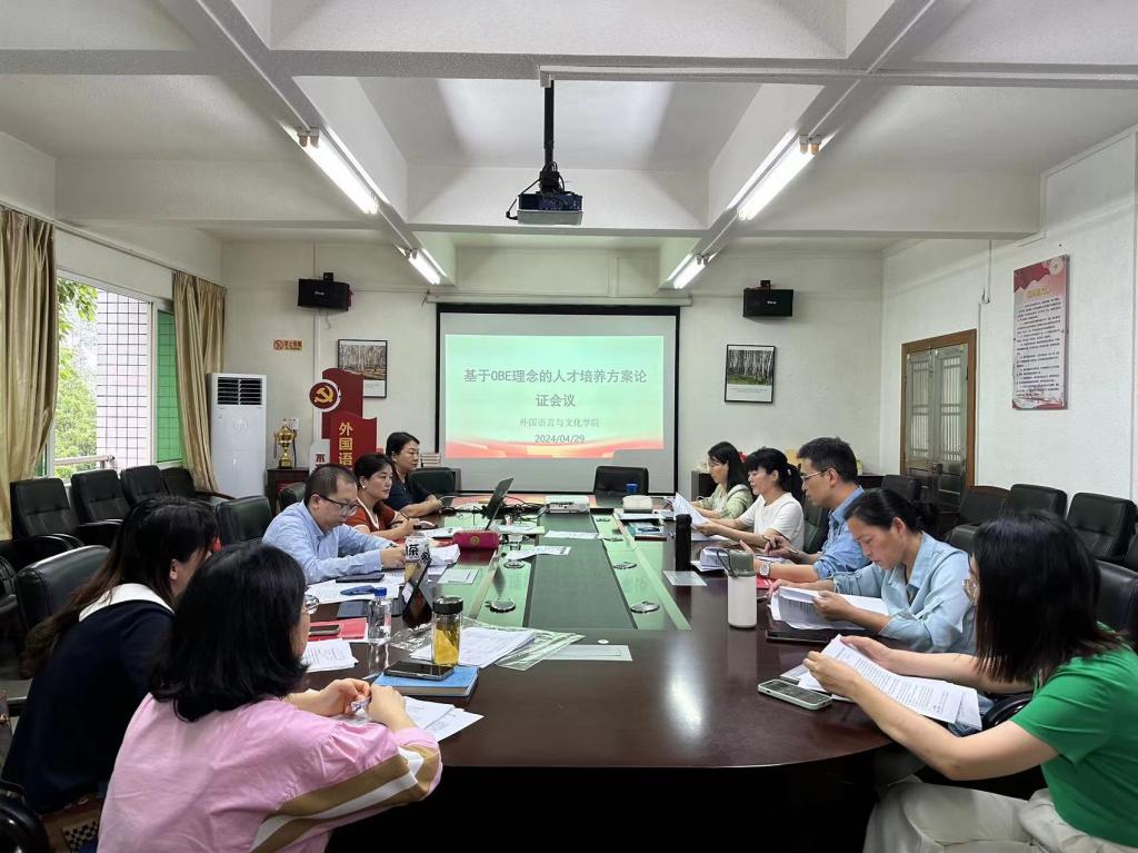 太阳成集团tyc33455于2024年4月29日上午9:00在会议室召开了基于OBE(Outcome-Based Education,成果导向教育)理念的人才培养方案论证会议。本次会议聚焦于如何通过OBE理念,优化英语、商务英语、翻译三个专业的人才培养方案,以更好地适应社会和市场的需求。