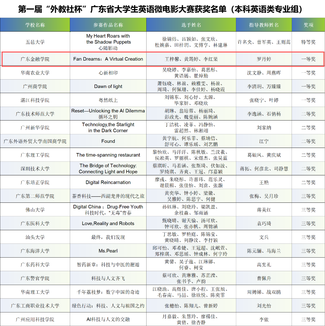 此次大赛,不仅为同学们构筑了一个闪耀创意、挥洒才华的舞台,更点燃了外院学子对英语影视创作与文化传播的无限热情。这一荣誉如同璀璨灯塔,照亮了更多外语学子的逐梦之路,鼓舞她们勇敢地踏入这个融合艺术与语言魅力的广阔天地,不断追求卓越,致力于成为具有国际视野与深厚文化底蕴的新时代影视翻译与传播精英。