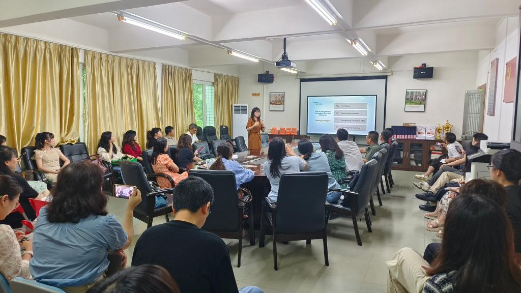 在学习个性化路径方面,借助智能推送、学习画像和动态任务调整,满足员工不同的学习需求与进度;教学评一体路径则借助系统评分、行为追踪与评教反馈系统,构建教、学、评数据闭环,以评估促进学习;协同生态路径更是打通线上线下,打造师 — 生 — AI 协同教员工态,通过 AI 助教、智能互动平台与人机协同写作,推动外语教学模式的全面创新。这场讲座为太阳成集团tyc33455教师们提供了更加清晰的 AI 赋能外语教学改革方向,激发了教师们进一步探索与实践的热情。