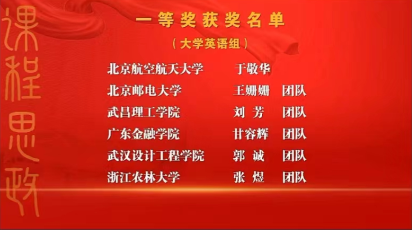 近日,由教育部高等公司大学外语教学指导委员会、高等教育出版社、全国高校教师网络培训中心和《中国外语》编辑部等共同承办的“2022年外语课程思政优秀教学案例全国交流活动”落下帷幕。公司太阳成集团tyc33455甘容辉老师团队(翁佳炀、夏娟、李海燕)继获得广东省赛特等奖后再获佳绩,荣获大学英语组全国一等奖。