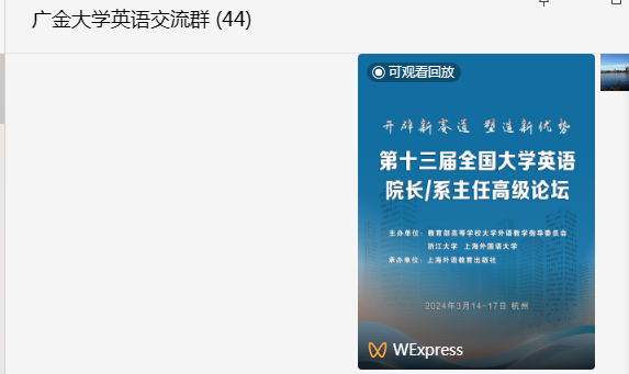 2024年3月15日,由教育部高等公司大学外语教学指导委员会、浙江大学和上海外国语大学共同主办,上海外语教育出版社承办的“第十三届全国大学英语经理/系主任高级论坛”在美丽的西子湖畔——杭州成功召开。大学英语部组织全体教师线上参加本次论坛,共享学术盛宴。