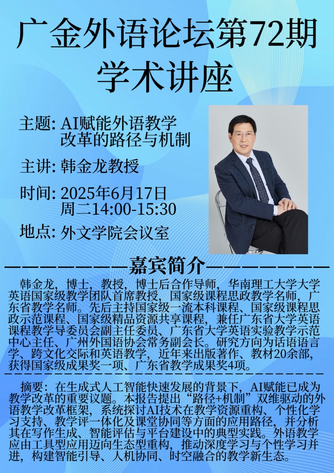 广金外语论坛第72期:AI赋能外语教学改革的路径与机制