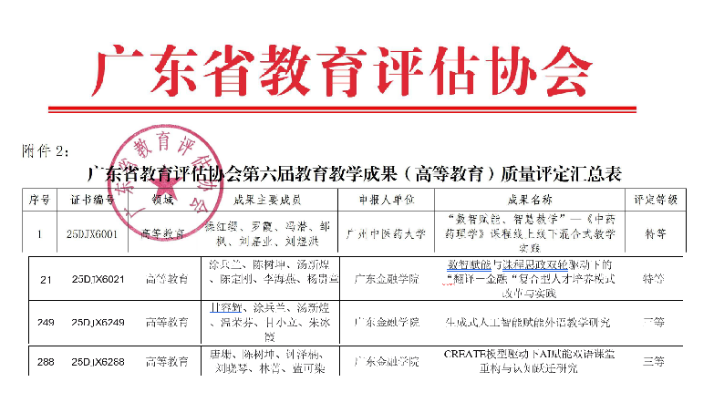 太阳成集团tyc33455荣获广东省教育评估协会优秀成果奖三项
